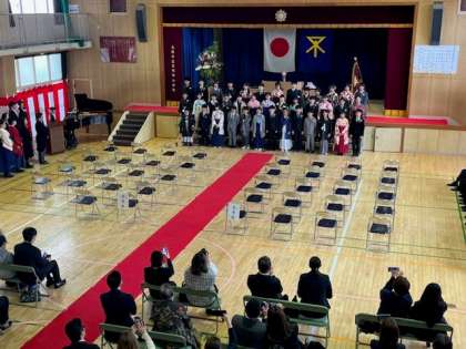 巣立っていく39名の卒業生のみなさん、ご卒業、おめでとうございます。たくさんの方々に見守られ、東桃谷小学校第95回卒業証書授与式が無事に執り行われました。保護者、地域、教職員、お世話になったすべての方々に「ありがとう」の感謝の気持ちをしっかり伝えることができました。これからのみなさんの活躍を祈り、応援しています。