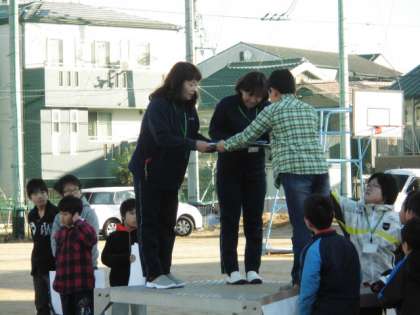 児童集会の最後に給食調理員に対して各学年児童からの感謝状を手渡しました。