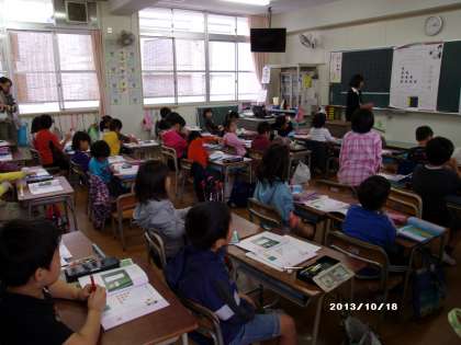 1年・・国語「カタカナをみつけよう」、2年・・算数「かけ算」の様子です。