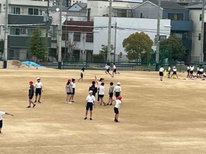 本校の運動会は6月です。さっそく、体育の学習では50メートル走のタイムを計っている学年がありました。この時間は、4年生と6年生が実施していました。
