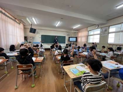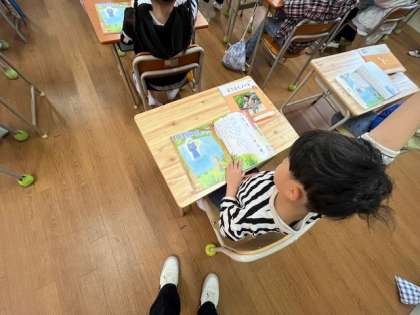2年の道徳の学習の様子です。今日の教材は、「金のおの」でした。登場人物になりきり、自分の考えを積極的に発表していました。