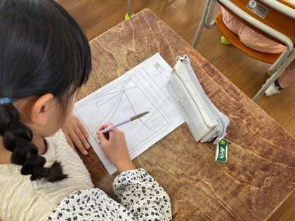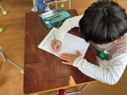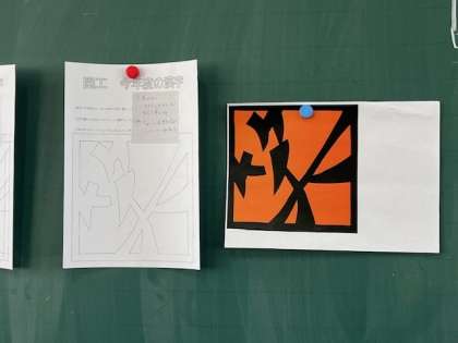 4年図工の学習の様子です。漢字1字を決めて、わくの中に大きく書きます。どんな1文字が浮かんできたかな。