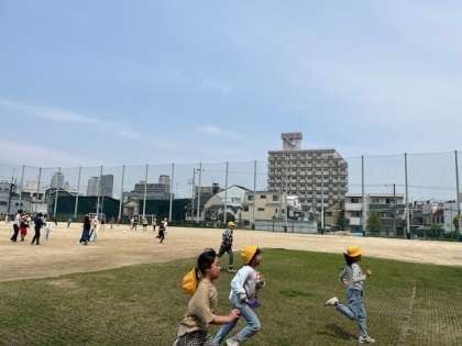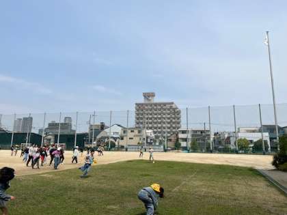 東桃谷小学校自慢の広い運動場で、休み時間、元気いっぱい楽しみます。楽しかった休み時間の終わりを告げるチャイムが鳴ると、一斉に教室に帰っていきます。気持ちの切り替えが上手になってきました。