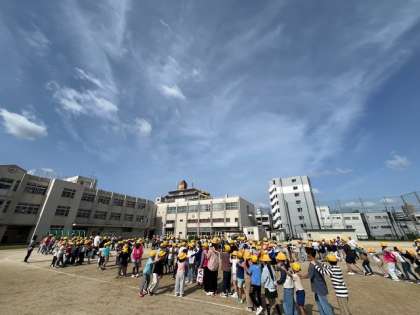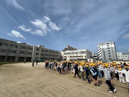 今週の集会は「じゃんけん列車)です。先ずは、たてわりグループの中で、じゃんけんをします。次は、グループ対抗です。どんどん、列車が長くなりました。今種も、大変盛り上がりました。