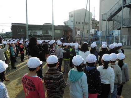 そのカードの中心に、1〜5年生の人文字写真を貼付します。