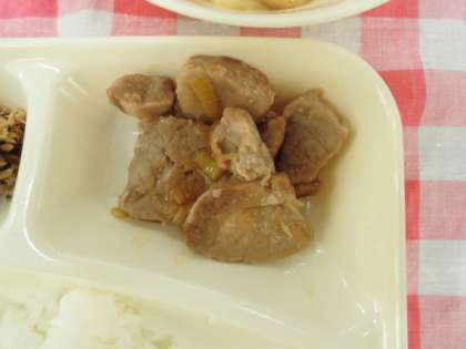 本日の献立は、豚肉のねぎだれかけ・さといもと野菜の煮もの・ツナっ葉いためです。