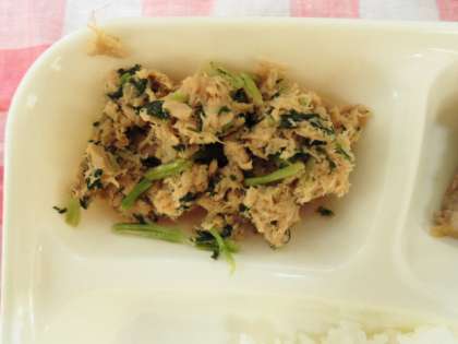 子どもたちは やはりお肉が好きですね。ツナっ葉いためは ご飯にふりかけておいしくいただきました。 ごちそうさまでした。