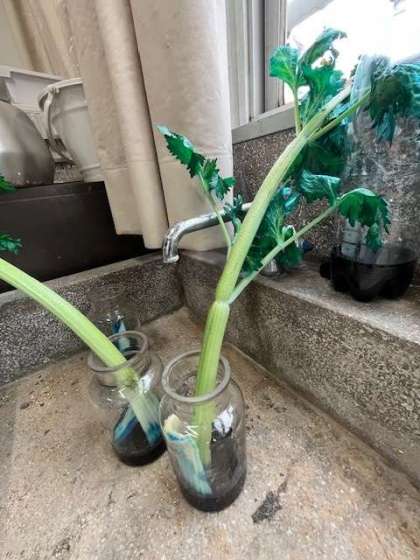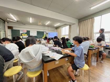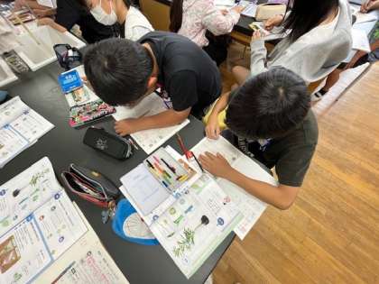 6年理科の学習の様子です。根から取り入れた水は、どこを通っていくのか?実際に色水を吸ったセロリを観察し、まとめをしていました。