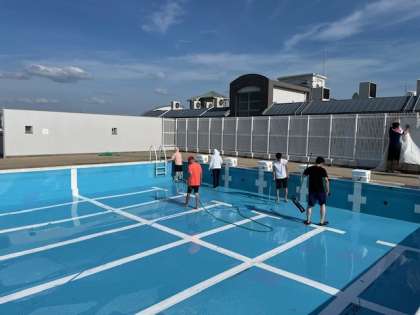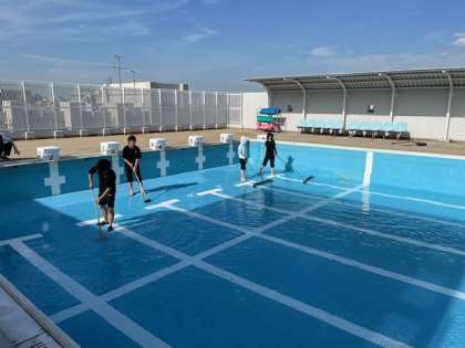 いよいよ今週木曜日からプール学習が始まります。先週末、業者によるプール清掃が行われましたが、今日は、教職員で仕上げの掃除、磨きをしました。子どもたちには、とてもきれいになったプールで、思いっきり泳いでもらいたいです。