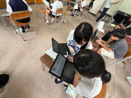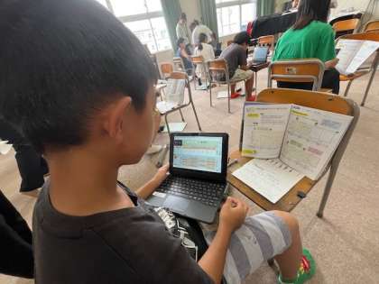 和音にあった旋律にするためにリズムを工夫していきます。パソコンを使って、まとまりのある旋律を作っていきました。