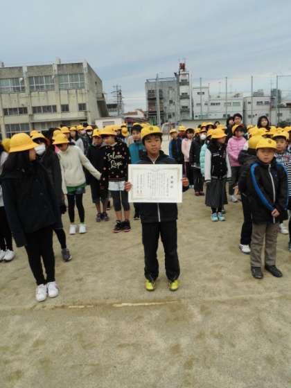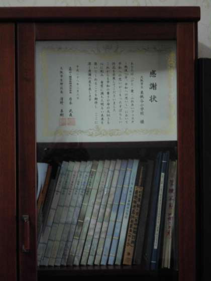先日、区民センターで開催された「ひと・愛・ふれあいフェスタ〜戦後70年、平和への思い〜」に6年生の「平和新聞」を出展したことに対しての感謝状です。