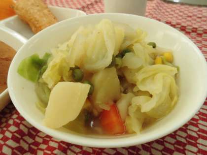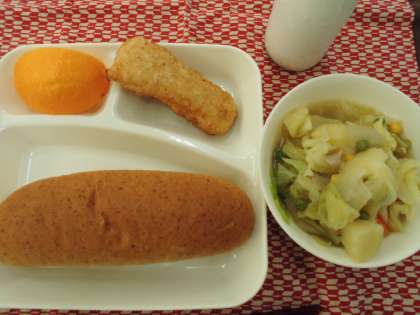 献立は、いかてんぷら、洋風煮、デコポン、パン、牛乳でした。