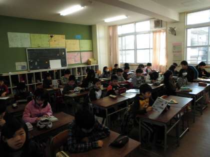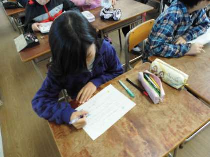 4年生では、昨日の囲碁教室の感想やお礼の手紙を書いていました。