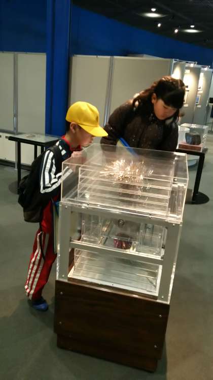 大阪市立科学館に来ています。プラネタリウム鑑賞が終わり、科学館内をグループで見学しています