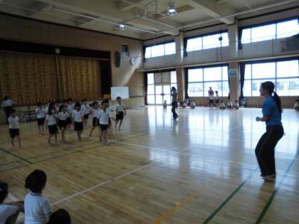 1年生たちも素足になって久しぶりのリズムにチャレンジしました。