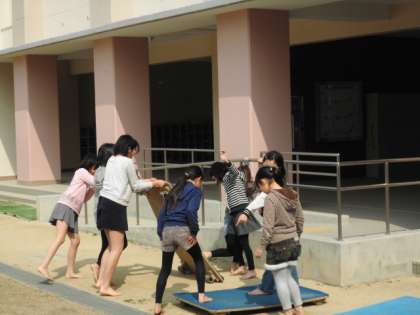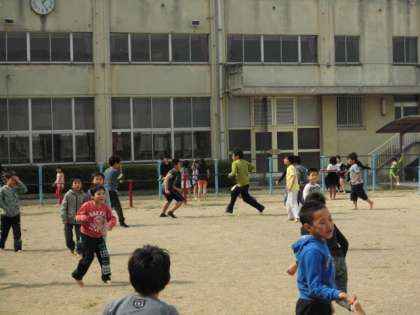 大勢の子どもたちが、休み時間ごとに芝生や運動場に出て思い思いに遊んでいます。