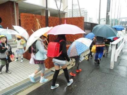1月の地域合同避難訓練で確かめた各町会の第一次避難場所まで一緒に下校しました。
