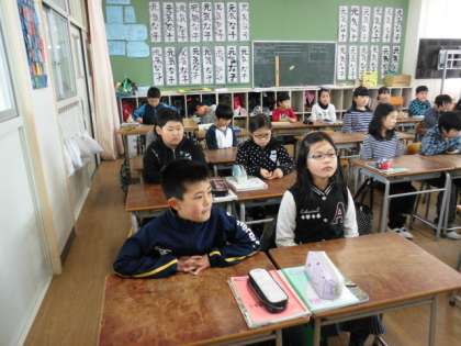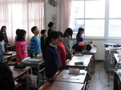 東日本大震災がおこった時刻に、全校で黙とうを捧げました。