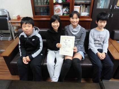 今朝、4名の児童が校長室まで賞状を持って、報告に来てくれました。