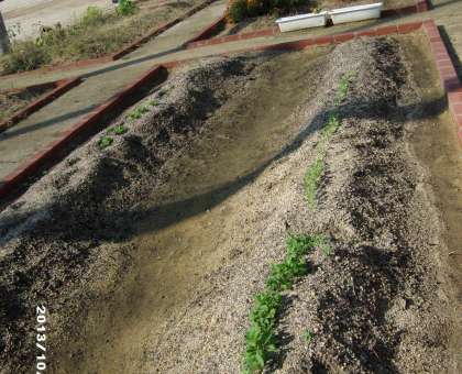 整地された畝に「はつか大根・田辺大根・にんじん・玉ねぎ・白菜」を植えていただきました。水やりもお世話いただいています。また、「間引き」していただいたものもプランターに植えていただきました。