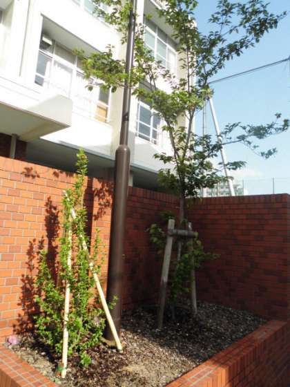 正門脇の桜とムクゲですが、若葉が出てきています。