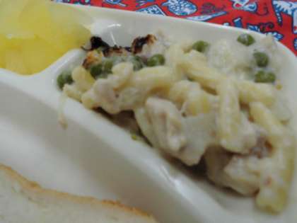 マカロニグラタンは、子どもたちが楽しみにしているメニューの一つです。こんがりと焦げ目もついて、とてもおいしくいただきました。