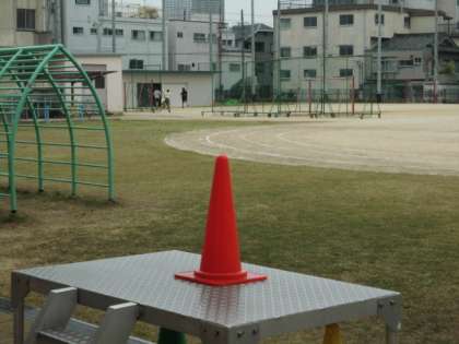 休み時間に自由に使えるサッカーボール、バスケットボール、ドッジボールを6年生が率先して片付けていました。