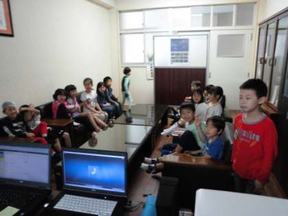 休み時間ですが、運動場はまだ状態が悪いので、子どもたちが校長室に遊びに来ました。