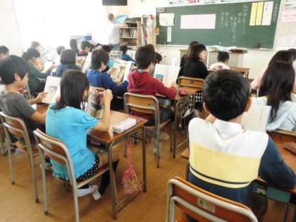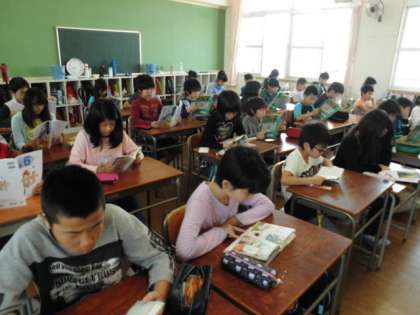 6年生の教室では、子どもたちがそれぞれに本を選んで読んでいました。