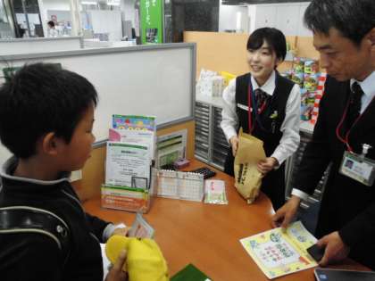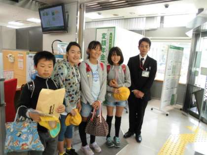 児童会代表児童が、熊本地震救援募金として集めた募金(36,744円)をゆうちょ銀行を通して「日赤平成28年熊本地震災害義援金」の講座に振り込みました。
