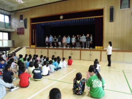 児童会役員や各委員会の委員長、副委員長を認証する式です。