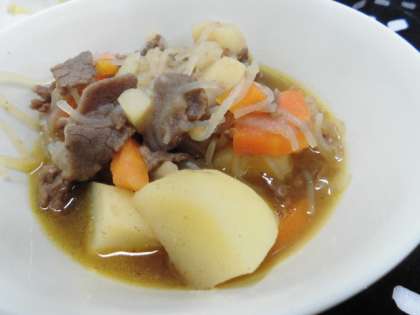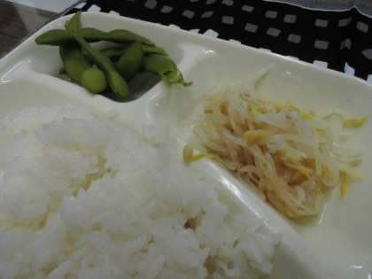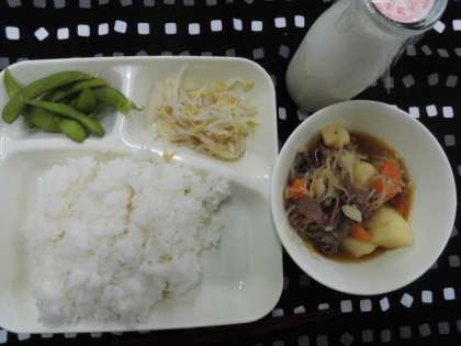 献立は、肉じゃが、もやしのゆずの香あえ、枝豆、ごはん、牛乳でした。
