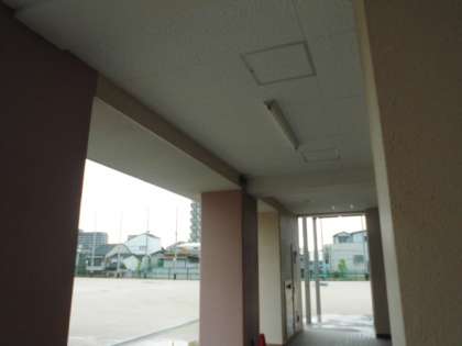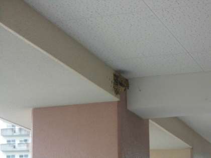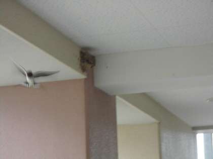そのツバメを目で追いかけていると、ピロティの方に飛んでいきました。