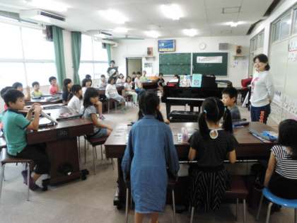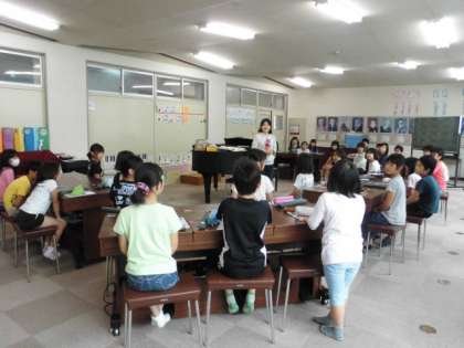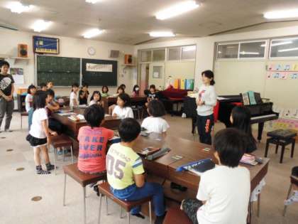 遠足が延期になったことで、音楽担当の夫先生と3年生の子どもたちの今年度初めての音楽授業が行われました。