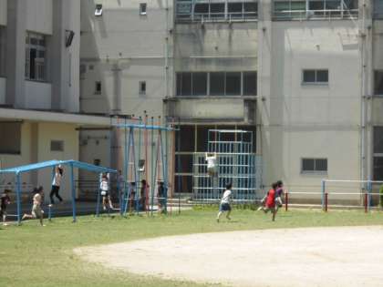 芝生では、マット運動の側方倒立回転をしている女児も見かけました。
