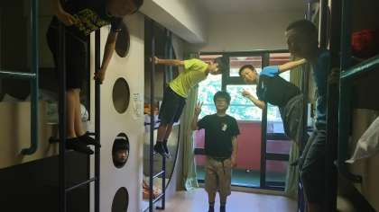 お部屋でリラックスしています。くつもきれいにそろえています。