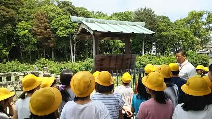 前方後円墳の説明を聴いています。