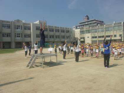ラジオ体操を指導前と指導後で比べるとずいぶん動きがよくなりました。