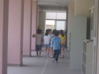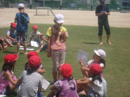 芝生や教室で活動したり、一緒に校内探検をしている学年もあります。