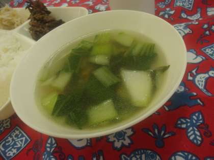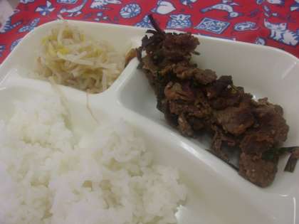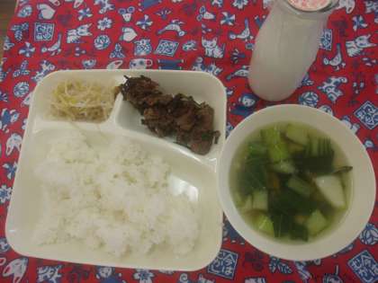 献立は、プルコギととうふのスープ、甘酢あえ、ごはん、牛乳でした。