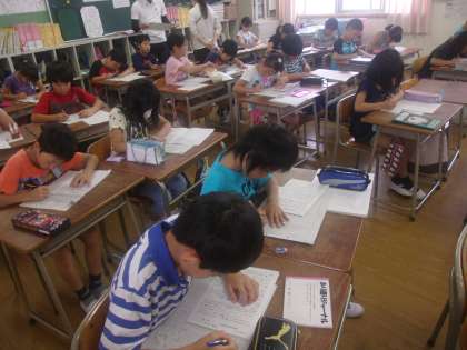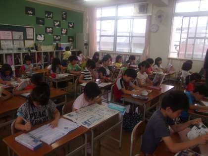 もう、それぞれ算数の課題が終わっていて、国語のプリントをしたり、読書をしたり、朝の会が始まっていたりしました。