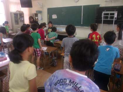 朝の時間に、4年生・3年生・2年生の教室に行きました。