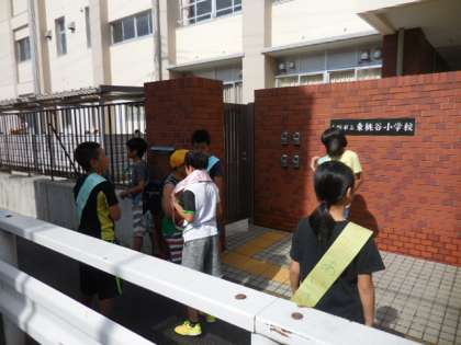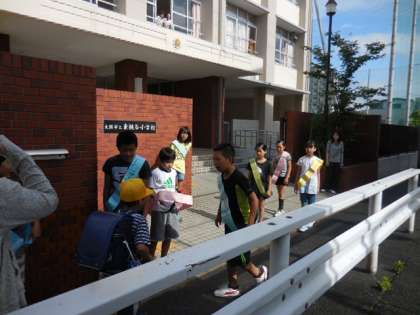 児童会から運営委員会の児童は、毎朝玄関に立ち、各委員会が曜日ごとに立っています。