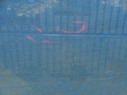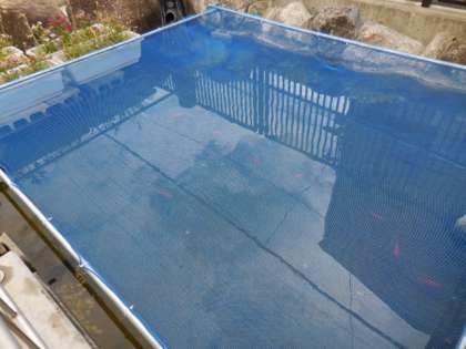 カラスやネコに襲われないように池の上は、ネットで覆っています。