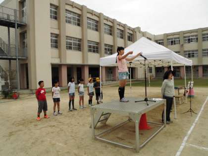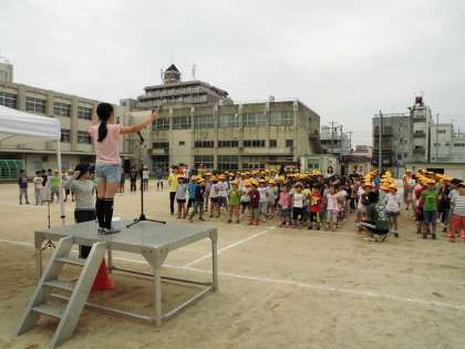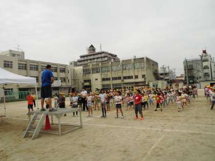 明日の「ひがもも陸上2016」に備えて、開閉会式を主にいろいろと確認や全体練習を児童集会として行いました。