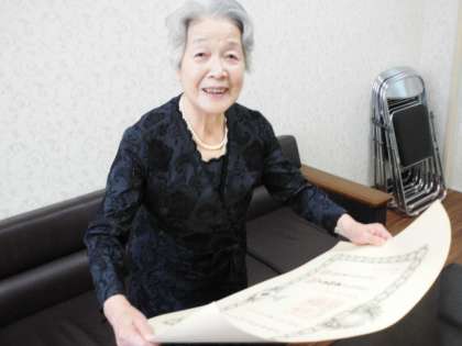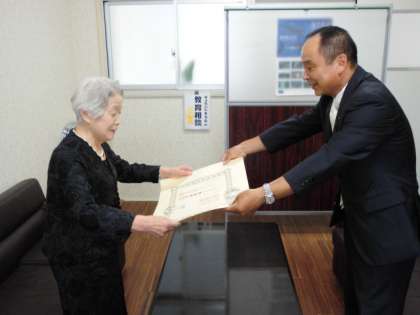 このたび、昭和60年から昭和63年まで東桃谷小学校校長として退職までご勤務された嶋田弘子先生がそれまでの大阪市の小学校教育に貢献されご功績をあげられたことが認められ叙勲されました。
