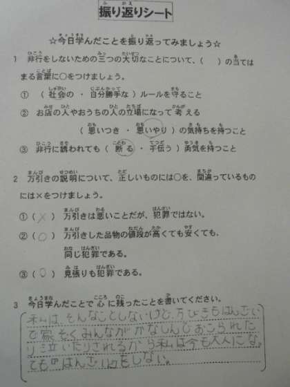 ご家庭でも、今日の学習をふり返り、お話していただければと思います。