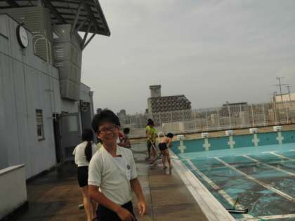 6年生は、お昼の掃除の時間にプール棟の階段、更衣室等を掃除し、6時間目には全員が着替えて、プール内やプールサイドの掃除に力を尽くしてくれました。