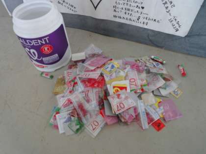 今朝、地域の方から「小学校では、まだベルマーク活動を続けておられますか?」と問われ、「はい、続けています。」と答えたら、ガムボトルにいっぱいのベルマークをいただきました。