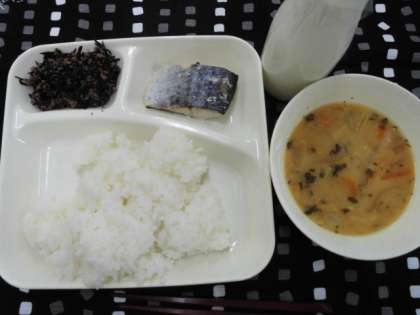 献立は、さごしの塩焼き、みそ汁、牛ひじきそぼろ、ごはん、牛乳でした。